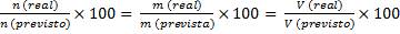 forma e a quantidade de matéria de produto teoricamente prevista com