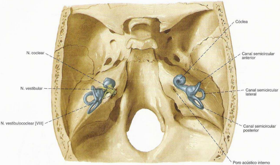 localização do ouvido interno no interior do crânio.