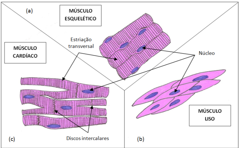 três tipos de tecidos de musculares classificados de acordo com as suas