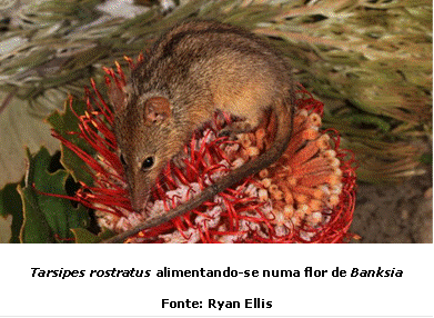 Tarsipes rostratus que se especializou na ingestão do néctar e pólen